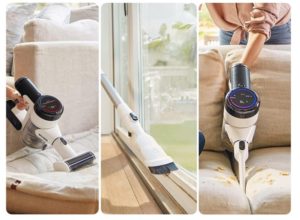 - Mit einem einfachen Druck auf den Auslöser werden Staub und Haare, die sich um den Filter herum verfangen haben, abgekratzt und direkt in den Staubsammelbehälter geschoben