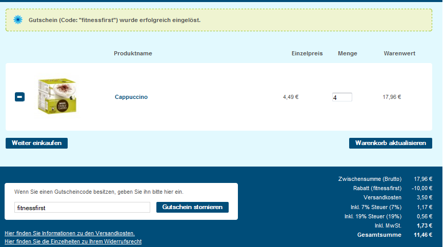 Der Gutscheincode lautet: fitnessfirst