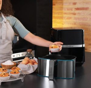 - Diättische Fritteuse für ein Kochen mit nur einem Löffel Öl, um gesündere Gerichte zu zubereiten. Schüssel mit 5,5 Liter Kochbereich zum Garen von großen Mengen an Speisen.