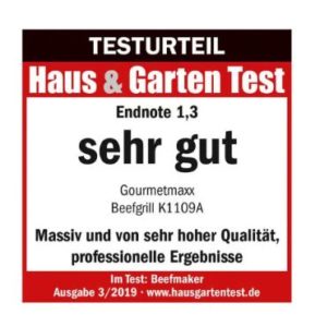 4,1 von 5 Sterne. Bei Haus & Garten wurde der Beef Maker in der Ausgabe 3/2019 mit dem Testurteil „sehr gut“ (1,3) bewertet.