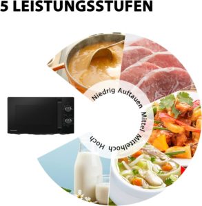 - Praktische Funktionen Auftauen nach Gewicht/ Zeit, 35-minütige Küchenuhr, rutschfeste Füße, stabiler Drehteller
