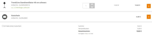 Im Onlineshop von Globus-Baumarkt bekommt ihr den TrendLine Standventilator 40 cm für 9,62€ (Vergleichspreis ~24€) Ersparnis ~14€