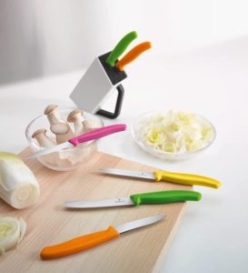 - Sie können es auch das Zitronen-Orangen-Apfel-Set nennen. Oder das Mais-Rübli-Salat-Trio. Victorinox nennt es schlicht das allererste farbige Swiss Classic Gemüsemesser-Set. Der