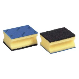 - Die schwarze Scheuerseite des Schwamms entfernt hartnäckigen Schmutz besonders gründlich, während die blaue Seite Verschmutzungen sanft aufwischt