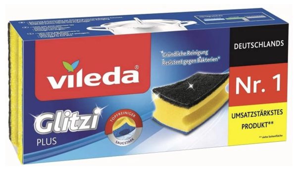 - Der Vileda Glitzi Plus Topfreiniger hat zwei leistungsstarke Reinigungsseiten zum Geschirrspülen und zum Reinigen von Oberflächen