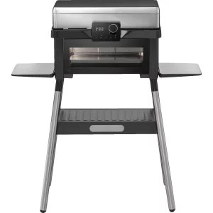 - Der großzügig bemessene Backofen (bis zu 200 °C) ist mit Sicherheitsglas geschützt und ideal für „Rückwärtsgrillen“, für das Ruhen/Nachziehen von Fleisch oder viele andere Gerichte