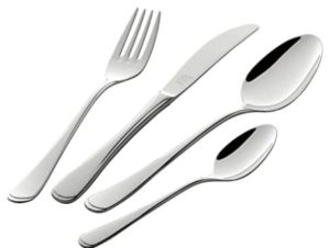 - Perfekte Ausstattung für mehrere Gänge: Jeweils 12 Menülöffel, -gabeln, -messer, Kaffeelöffel und Kuchengabeln, 1 Suppen/Sahnelöffel, 2 Fleischgabeln, 1 Saucenlöffel, 1 Tortenheber, 1 Zuckerlöffel, 2 Servierlöffel