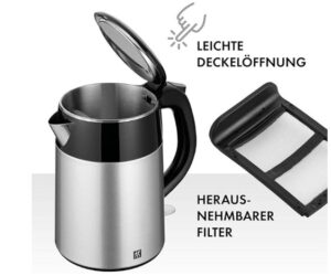 Bei Amazon bekommt ihr für unbestimmte Zeit den ZWILLING Wasserkocher, 1,2 Liter, 1.550-1.850 Watt, Edelstahl/Kunststoff, silber/schwarz