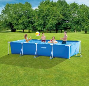 - Rectangular Frame Pool: Ein rechteckiger Pool mit robustem Stahlrahmen und SuperTough PVC-Wänden. Einfach aufzubauen, ideal für größere Gärten und bietet viel Platz für Schwimmen und Entspannung.