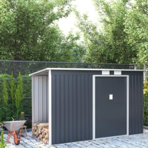 Juskys Metall Gerätehaus / Gartenhaus M mit Holzunterstand, Schiebtür, Lüftungsgitter für 227,94€