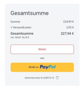 Nutzt dafür den Gutschein N-JUSKYS-10 und schon kommt ihr auf den genannten Preis.