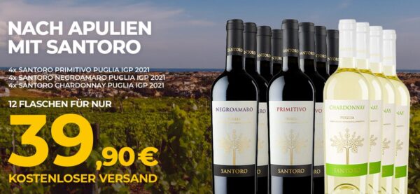 Beim Svinando Wine Club gibt es das Weinpaket nach Apulien mit Santoro mit 12 Flaschen für 39,90€ inklusive Versand.