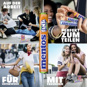 - ORIGINAL FANTA FLAVOUR: Mentos Fanta ist der leckere Kauspaß in Rollenform mit dem originalen Fanta-Limonaden Geschmack; Dabei sind die runden Bonbons außen knackig umhüllt und innen weich