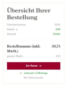 Mit dem genannten Gutschein entfallen die Versandkosten