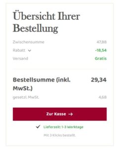 Dank dem genannten Gutschein entfallen die Versandkosten.