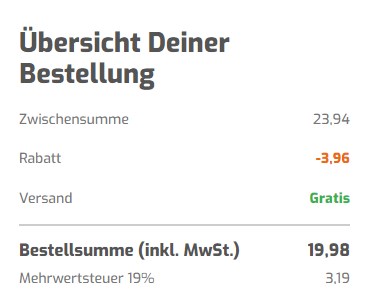 Die regulären Versandkosten betragen sonst 5,90€ pro Bestellung.
