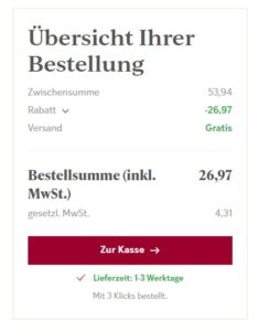 Dank des Gutscheincodes erfolgt der Versand kostenlos!