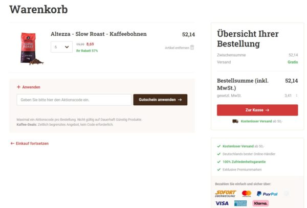 6kg Altezza Slow Roast Kaffeebohnen für 52,14€ + kostenloser Versand – nur 8,69€/kg