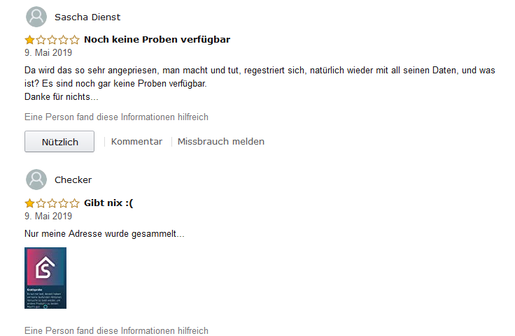 yrkn 15.06.2019, 17:10 #Hm, erstmal bei Alexa die skill "schick mir eine probe" aktivieren, d. h. installieren und registrieren. Dann funktioniert es. Lt. Bestätigung dauert es 2 Wochen bis die Probe da ist. Bin gespannt ob etwas kommt