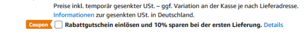 lemalix 24.08.2020, 00:28 # hilfreichBei mir ist der Schümli Espresso Ganze Kaffeebohnen (1kg, Stärkegrad 3/5, Premium Arabica) 1er Pack x 1kg für 9,89€ im Sparabo und ein 10% rabattcoupon wäre aktivierbar