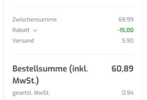 Die Versandkosten sind bereits im Preis berücksichtigt, diese würden ab einem Bestellwert von 65€ entfallen