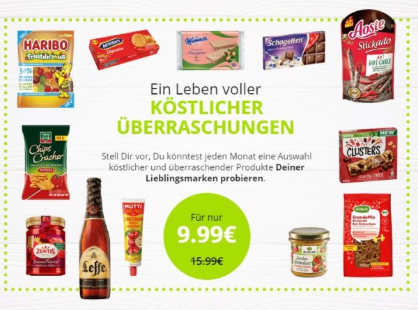 Denn bei Degusta bekommt man wieder die Degustabox voller köstlicher Überraschungen für 9,99€ (regulärer Preis: ~16€) Ersparnis ~6€