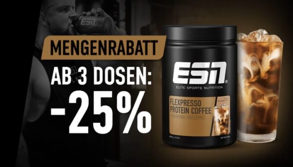 Bei ESN erhaltet ihr nun bis einschließlich 11. September satte 20% Rabatt auf alle Proteine sowie 25% Rabatt auf Flexpresso ab 3 Dosen. 🙂