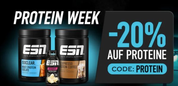 Neue Aktion bei ESN, dort erhaltet ihr bis einschließlich 13. Dezember 20% Rabatt auf Proteine