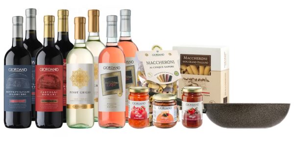 Giordano: 8 exklusive Weine + 5 Delikatessen + Wokpfanne für 39,99€