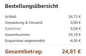 Bei mir stehen als Basispreis 22,57€. Wie kannst du dann mit Coupon von 15% auf 22,57€ kommen?