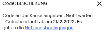 Um auch auf den Preis zu kommen, müsst ihr den Gutschein-Code BESCHERUNG verwenden.