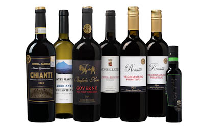 Italienisches Weinpaket mit 6 Flaschen + 1 Flasche Olivenöl für 42,99€