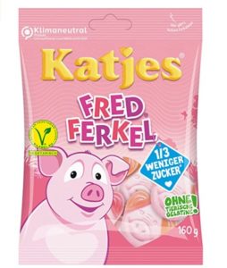 Bei Amazon bekommt ihr für unbestimmte Zeit Katjes Fred Ferkel mit weniger Zucker – Kultige Schaumzucker Süßigkeiten in Schweinchen-Form 160 g für 0,63€