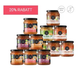 Little Lunch kommt euch bekannt vor? Gut möglich! Denn das Unternehmen ist bekannt aus der TV-Show „Die Höhle des Löwen“. Die Auswahl bei Little Lunch ist mittlerweile relativ großzügig sodass sich hier für nahezu jeden Gaumen was geeignetes finden lässt. Am besten schaut ihr das Sortiment einfach mal selbst durch. Es empfiehlt sich natürlich für mindestens 35€ zu bestellen um die Versandkosten zu sparen. Durch die kurze Zubereitungszeit natürlich ideal auch für die Arbeit geeignet: 2 Minuten in der Mikrowelle oder im Kochtopf erwärmen – fertig! 😉