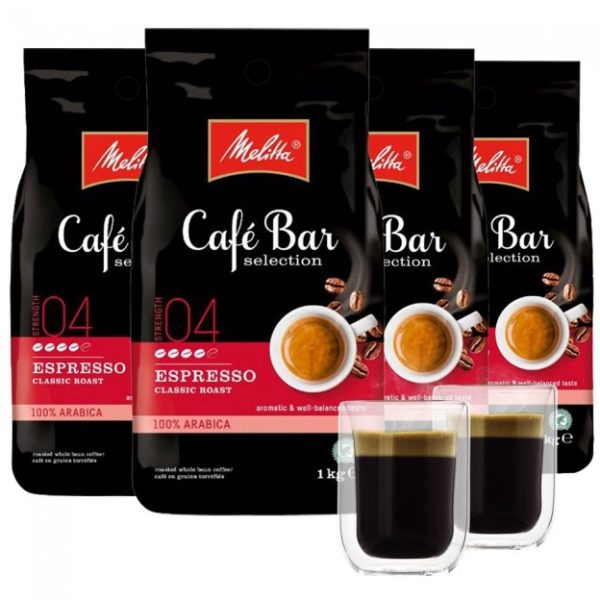 Melitta Espresso Classic-Kaffeebohnen (4kg) + 2 doppelwandige Kaffeegläser für 29,99€