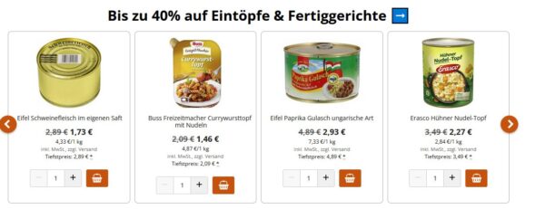 Außerdem gibt es gerade 40% auf Eintöpfe und Fertiggerichte.