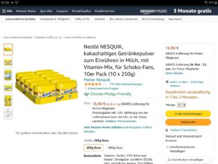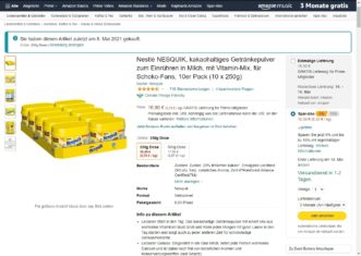 Denn bei Amazon bekommt man auf unbestimmte Zeit das Nestle Nesquick Getränkekakaopulver (10er-Pack) für 13,58€ (Vergleichspreis: ~19€) Ersparnis ~5€