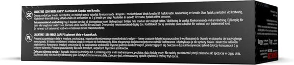 - CREATINE 1250 MEGA CAPS – Das Produkt, mit seiner einzigartigen Formel liefert Kreatin Monohydrat, wie es auch im Körper vorkommt. Im Muskelgewebe geht Kreatin in Phosohokratin über. Das Produkt ist für körperlich aktive Erwachsene bestimmt