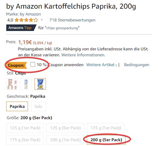Das ist mal ein richtig leckerer Preisfehler! Bei Amazon gibt es für unbestimmte Zeit 5 x 200g by Amazon Our Essentials Kartoffelchips Paprika für 1,09€!