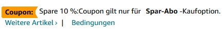 Der Preis liegt bei 12,26€, bestellt ihr das Ganze aber als Spar Abo und kündigt es wieder, erhaltet ihr hier schon mal 5% Rabatt + Ihr könnt zusätzlich den 10% Rabatt Coupon auf der Artikelseite erhalten.