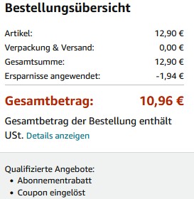 für 10,96€ (Vergleichspreis: ~17€) Ersparnis ~6€