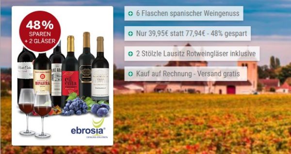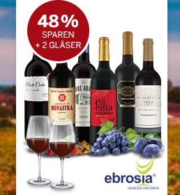 🍷 Rotwein-Probierpaket 6 spanische Weine + 2 Gläser für 39,95€
