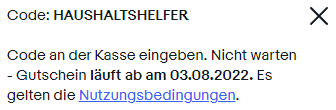 Um auch auf den Preis zu kommen, müsst ihr den Gutschein HAUSHALTSHELFER verwenden.