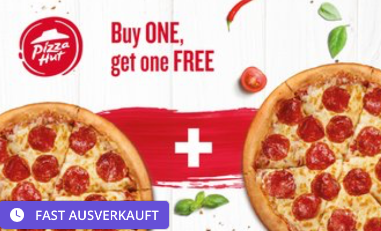 Effektiv zahlt ihr 0,85€ und erhaltet einen Gutschein von Groupon. Diesen könnt ihr bei teilnehmenden PizzaHut-Filialen einlösen und die zweite Pizza dann gratis dazu erhalten.