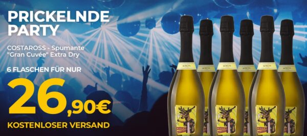 das Spurmante-Paket „Prickelnde Party“ mit 6 Flaschen für 26,90€ inklusive Versand.
