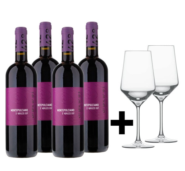 - Montepulciano 4er Paket + 2 Zwiesel Sauvignon Blanc Gläser für 19,25€ (Vergleichspreis: ~40€) Ersparnis ~21€