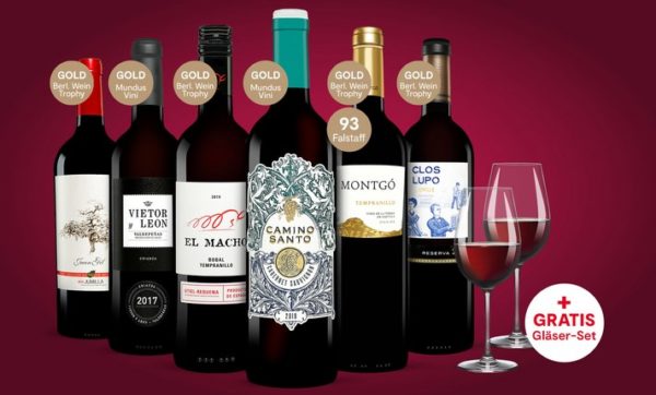 Vinos: 6er Paket Rotwein (alle goldprämiert) inkl. 2 x Schott Zwiesel für 30,98€