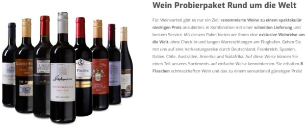 Denn bei Weinvorteil bekommt man das Wein-Probierpaket „Rund um die Welt“ für 39,99€ (regulärer Preis: ~70€) Ersparnis ~30€