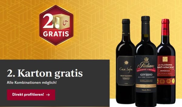 Bei Weinbörse ist gerade eine Aktion gestartet bei der ihr den 2. Karton gratis bekommt