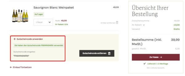 Weinbörse: 10€ Extra-Rabatt + Gratisversand